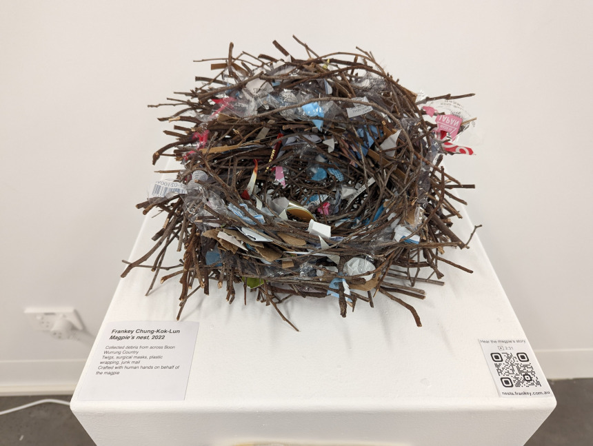 But, you know, that's also me in the nest. Look closer. In the twigs. The rubbish. The months of foraging for materials across the lands of the Wurundjeri peoples of the Kulin nation. Let us take a moment to pay our respects to their elders, past, present and future, and to you, if you identify as an Aboriginal or Torres Strait Islander.